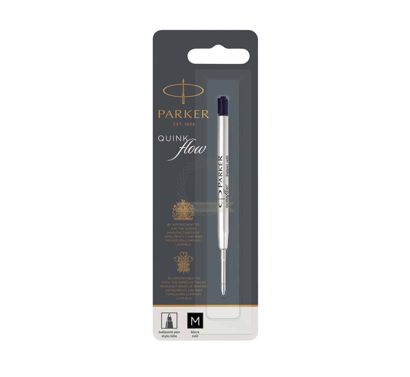 Quinkflow ballpoint refills provide an extra smooth writing experience and better ink flow, offering optimal reliability and performance. This Parker Ballpoint refill is in perfect black colour. Perfect for all Parker Ballpoint Pen’s. Width of writing is 1 mm (Medium).