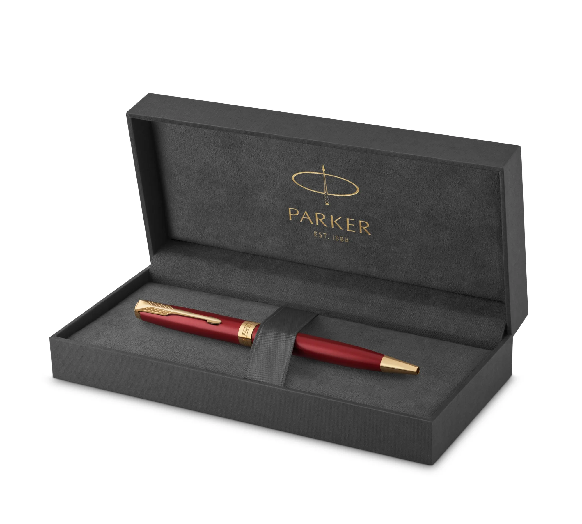 This heart warming ballpoint pen has a deep red satin finish, complemented by shiny gold trim details, providing an exceptional aesthetic. The classic design, ergonomic qualities and smooth flowing ink are a genius combination, offering a thrilling writing experience.